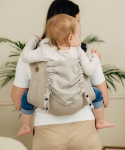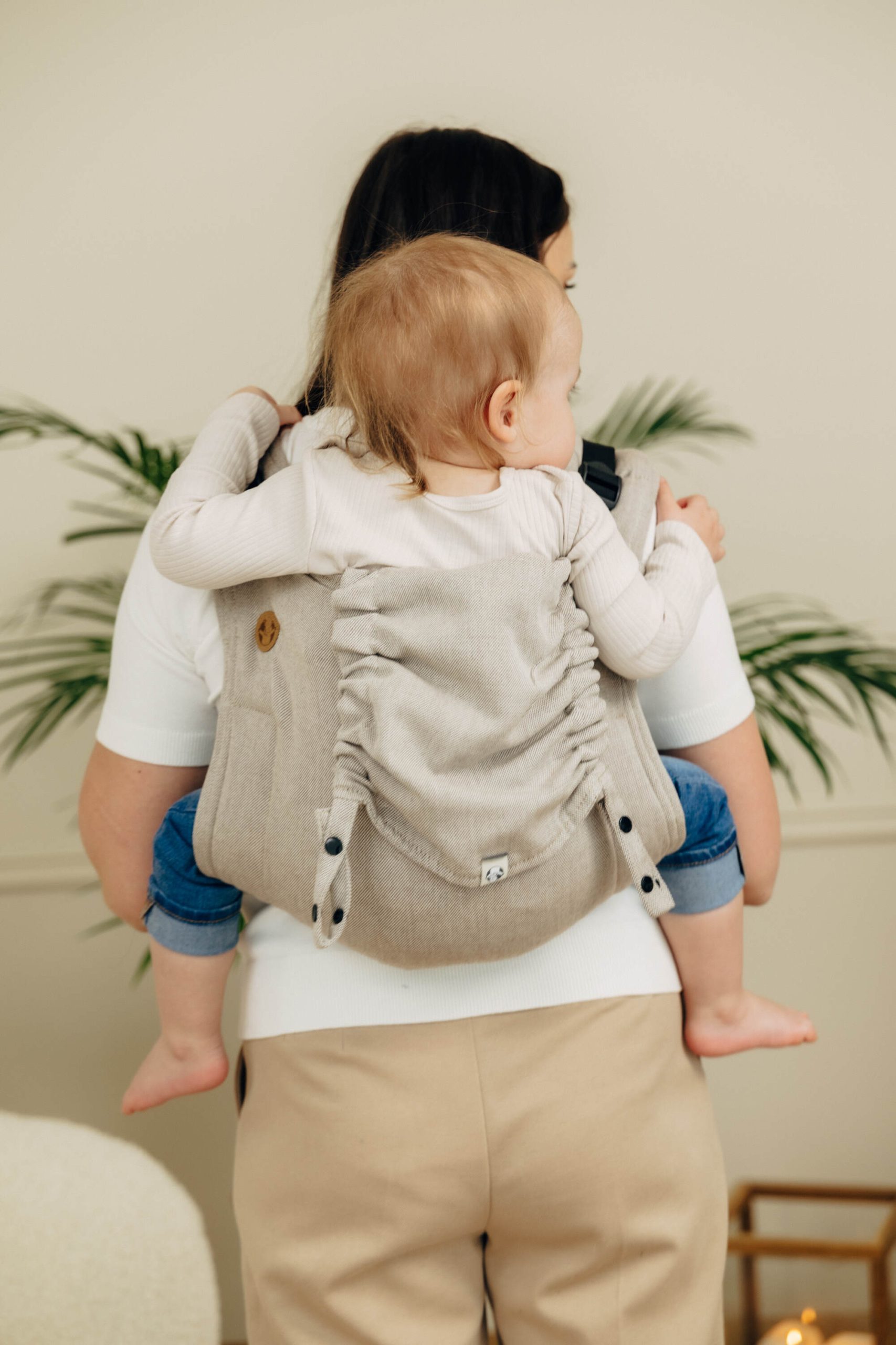 Svaki LennyLamb onbuhimo je napravljen u potpunosti od LennyLamb tkanih marama, naramenice su debelo punjene što je posebno važno, jer onbuhimo nosiljke nemaju pojas oko struka pa je sva težina deteta na ramenima. Kapuljača na LennyLamb onbuhimu je dizajnirana tako da je lako možete postaviti uz pomoć dugačkih trakica i tako bebi prekriti glavicu dok spava ili kada duva vetar.